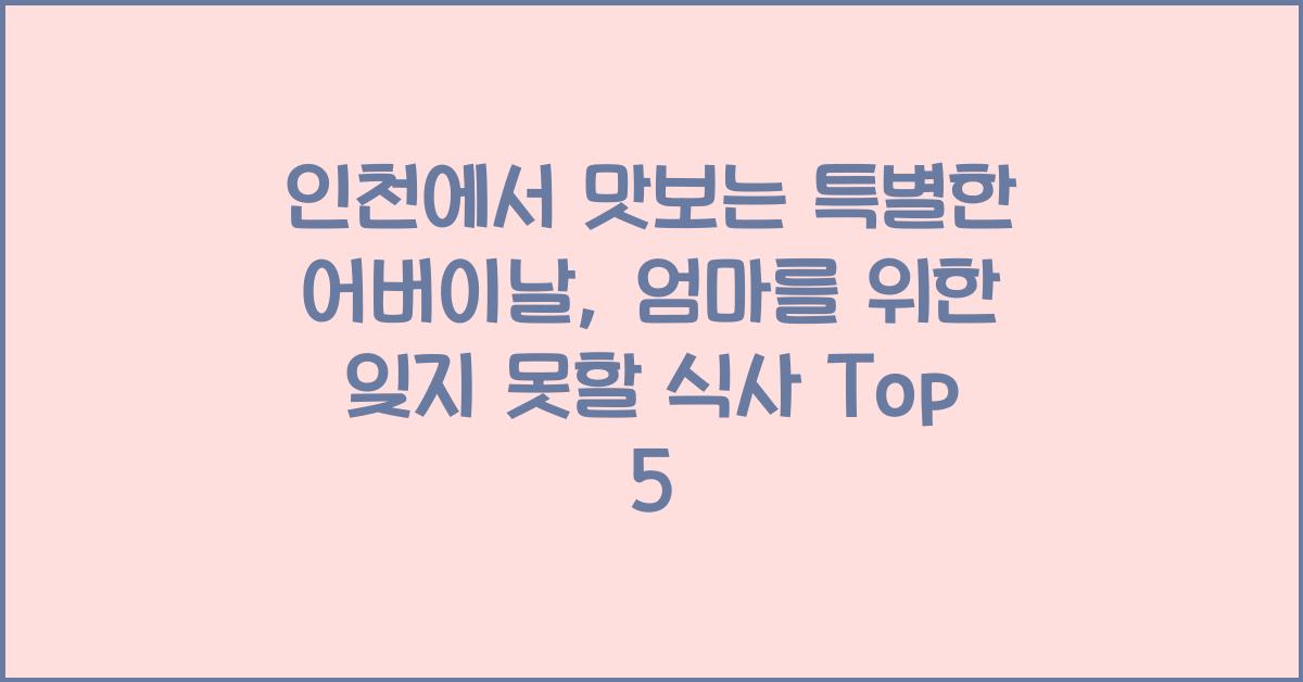 어버이날을 맞아 특별한 식사를 계획하고 계신가요? 사랑하는 엄마를 위한 잊을 수 없는 경험을 선사하는 것은 무엇보다도 중요합니다. 인천에서 맛보는 특별한 어버이날, 잊지 못할 식사 Top 5를 소개하며, 엄마와의 소중한 추억을 만들어보세요. 사랑의 맛이 느껴지는 엄마와의 식사가 될 것입니다.